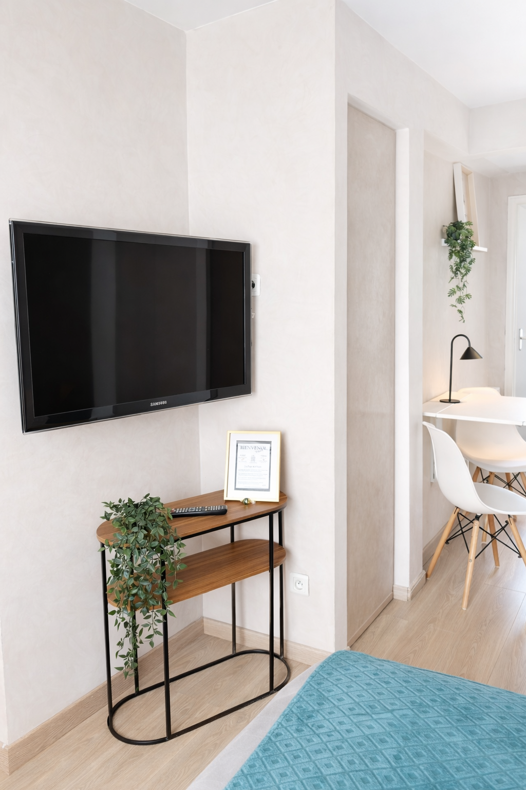 Le logement dispose d’un lit double avec literie de qualité, d’une cuisine équipée, d’un coin repas, d’un bureau, d’un WiFi haut débit et d’une télévision.